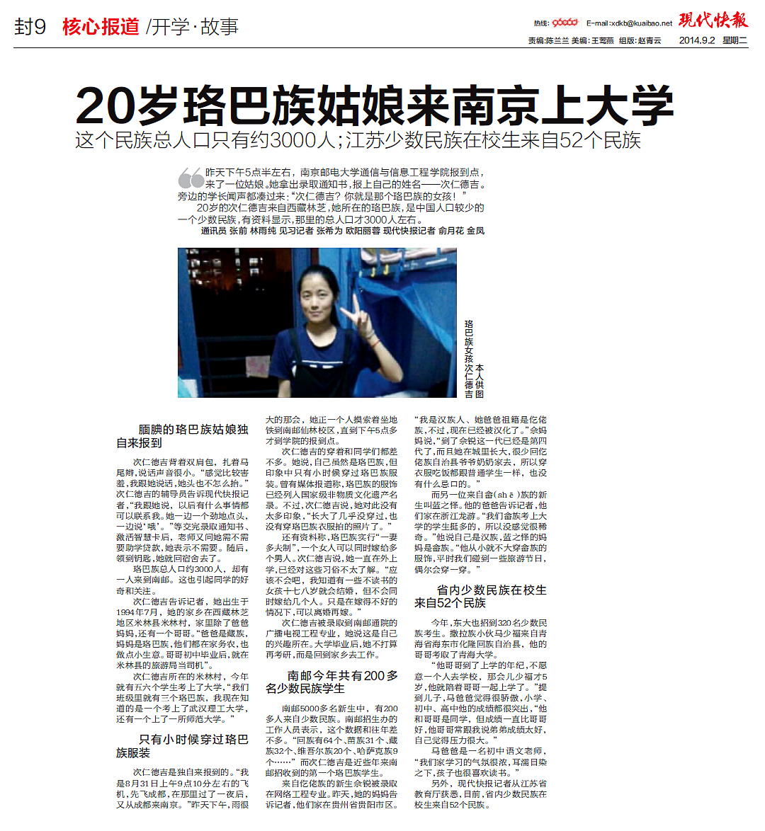 【现代快报】20岁珞巴族姑娘来南京上大学