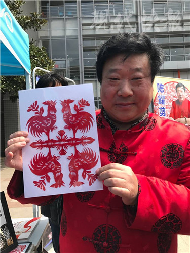 他说今年是南邮举办非遗文化进校园的第三年,他也就来了三年。“我给大学生上课,我希望大家都有耐心静下来学习这门手艺。我自己当年就是一把剪刀闯天下,现在在南京不仅买房买车,还培养女儿读了大学。我们的大学生不一定要以剪纸为生,但可以作为乐趣,逢年过节时,亲朋好友遇到喜庆日子时,一把剪刀一张红纸剪一个吉祥喜字、福字贴一贴,都是美好生活的点缀。”