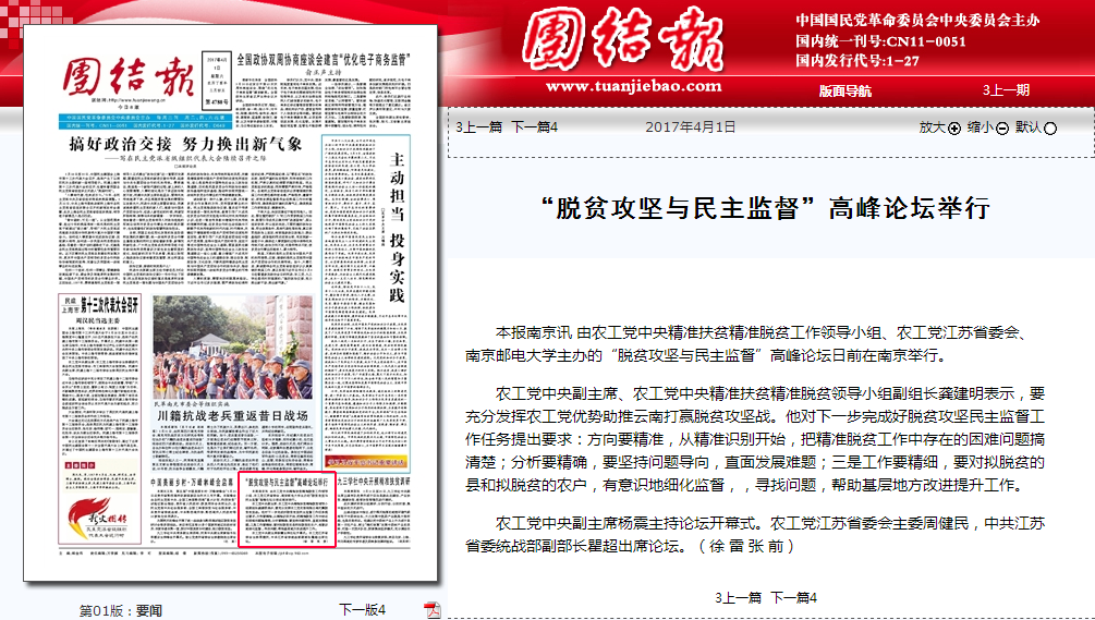 【团结报】“脱贫攻坚与民主监督”高峰论坛举行