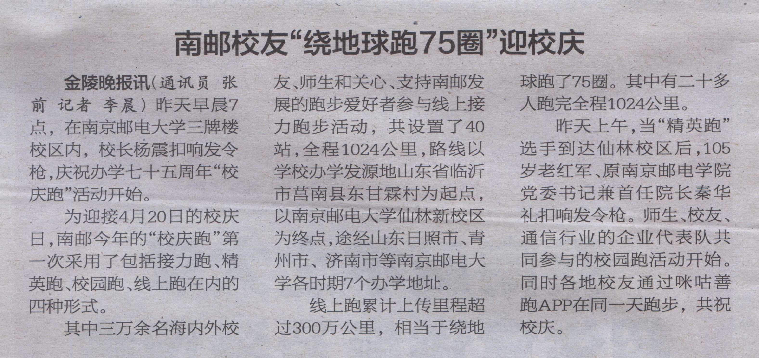 【金陵晚报】南邮校友“绕地球跑75圈”迎校庆