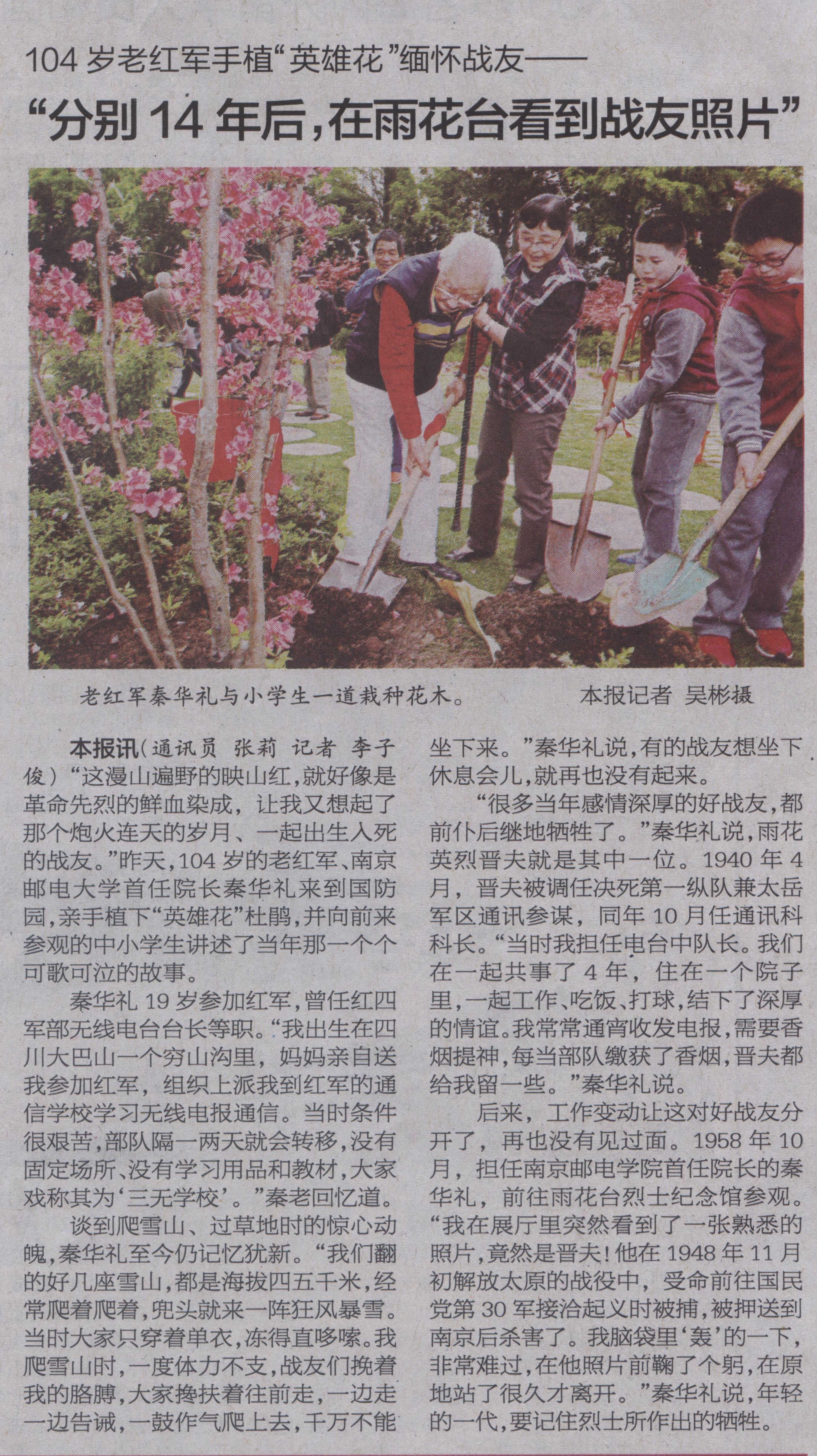 【南京日报】“分别14年后,在雨花台看到战友照片”
