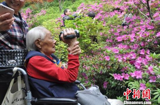105岁老红军亲手栽下一株映山红。 沈金霞 摄