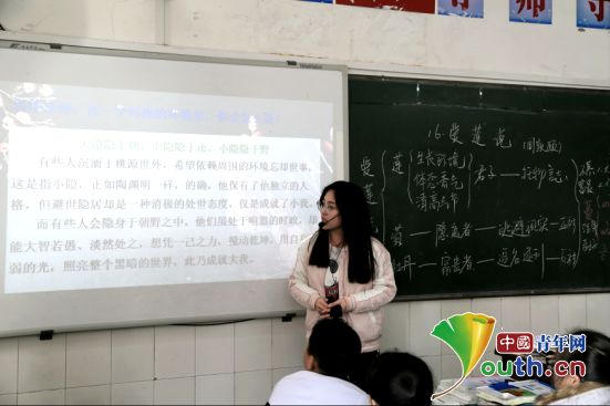 南京邮电大学研究生支教团蒋丽婷在公开课上。蒋丽婷 供图
