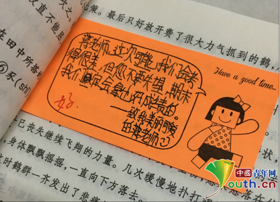 学生给南京邮电大学研究生支教团团长蒋丽婷的留言。蒋丽婷 供图