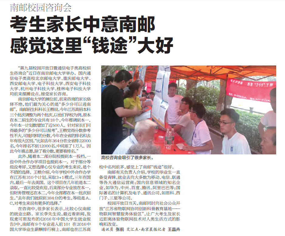 【南京晨报】考生家长中意南邮 感觉这里“钱途”大好