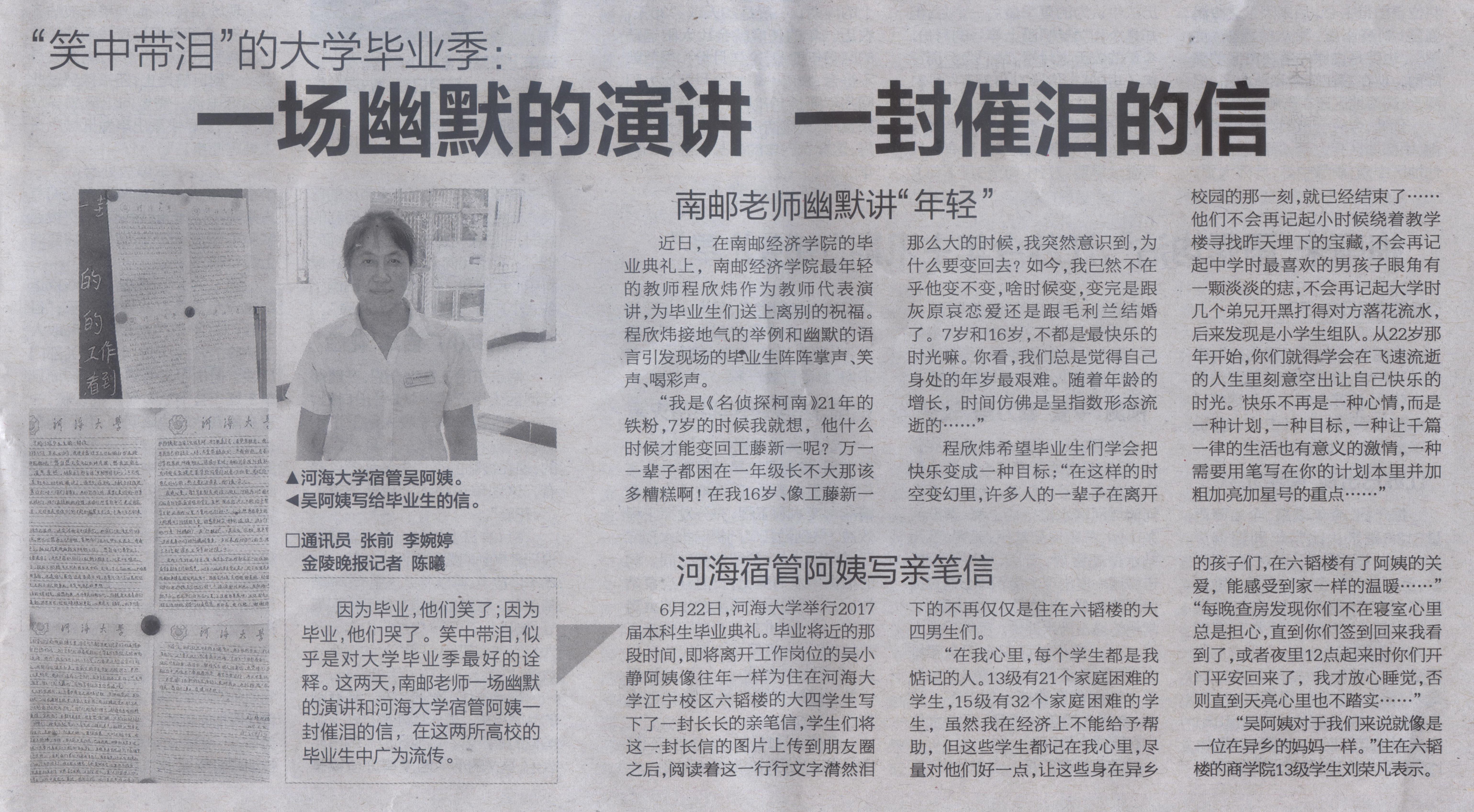 【金陵晚报】一场幽默的演讲 一封催泪的信