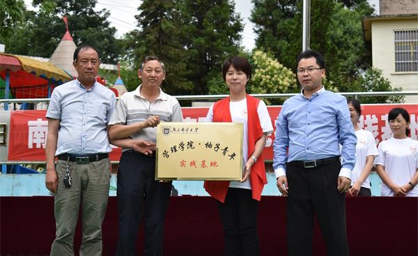 7月7日,南京邮电大学“柚子青年”暑期社会实践基地揭牌仪式在贵州开阳高寨乡杠寨小学举行。仪式上,南京邮电大学管理学院党委副书记邓艳华老师与杠寨小学左昌德校长签署了《共青团“青年就业创业见习基地”合同》,并为实践基地揭牌。贵州省慈善总会项目部部长邓建荣,杠寨村村支部书记,指导老师闾越、唐捷、刘婧、韩钰铃,11名学生志愿者以及杠寨小学的全体师生参加了此次活动。