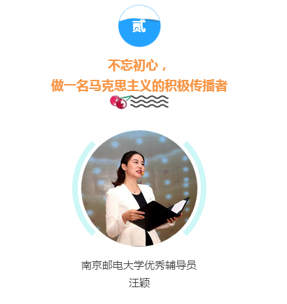 不忘初心是现在一个很流行的词儿,其实它指的就是信仰,作为一名高校辅导员,马克思主义是我的信仰,立德树人是我的初心,我将继续砥砺前行,做一名马克思主义的坚定信仰者、模范践行者和积极传播者,指导帮助青年学生发出属于自己的马克思主义最强音。