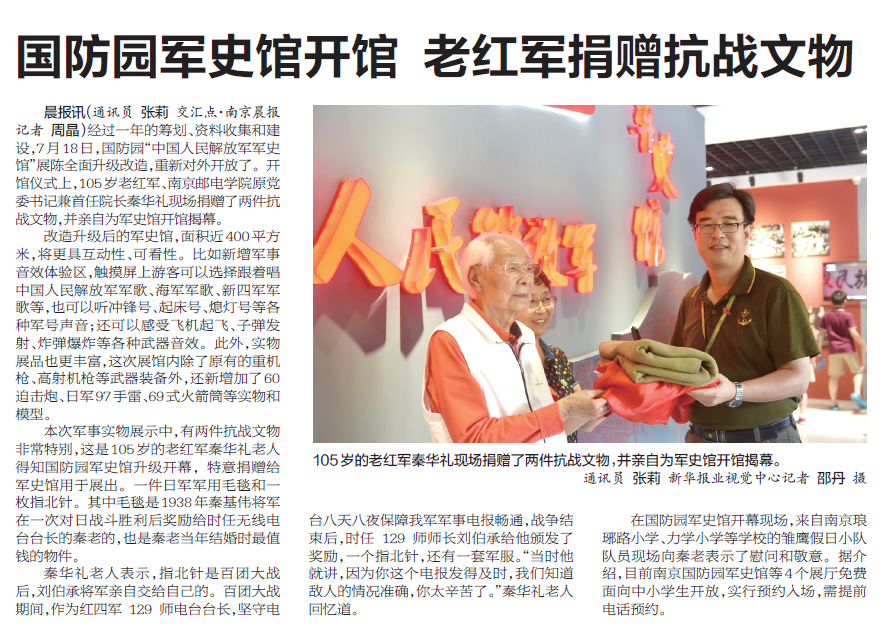 【南京晨报】国防园军史馆开馆 老红军捐赠抗战文物