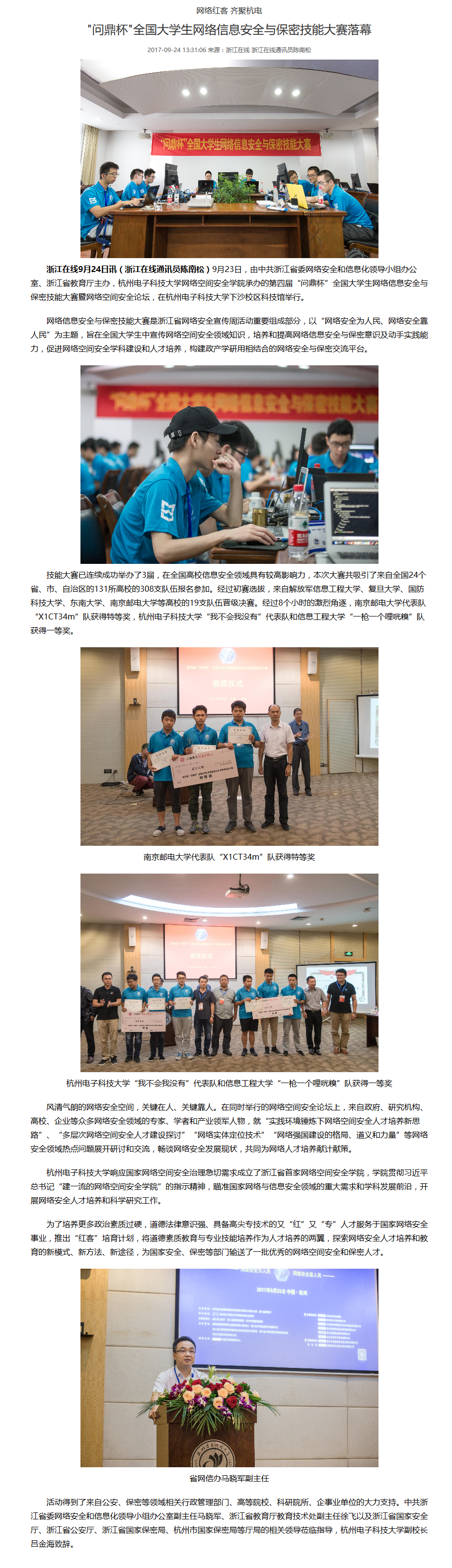 【浙江在线】"问鼎杯"全国大学生网络信息安全与保密技能大赛落幕