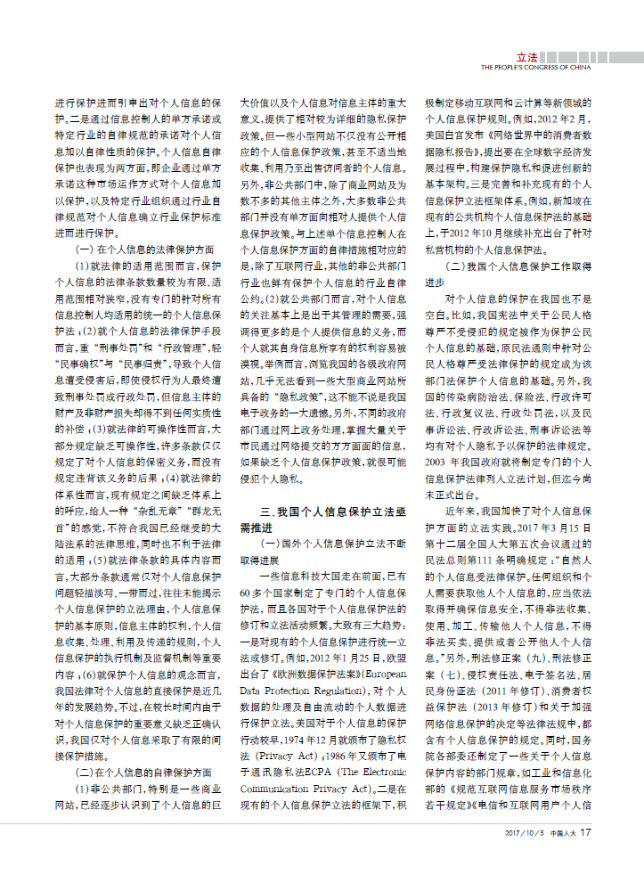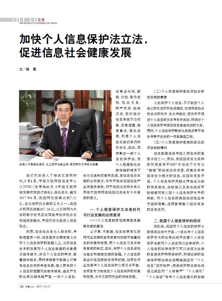 【中国人大】加快个人信息保护法立法,促进信息社会健康发展
