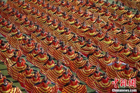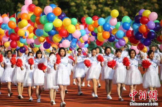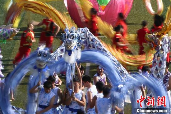 10月20日,在南京邮电大学仙林校区举办的该校田径运动会开幕式上,来自各个院系的大学生们整齐亮相,配以不同的服饰轮番展示大型武术、舞龙舞狮、舞蹈,场面壮观上演“色彩大放送”。
