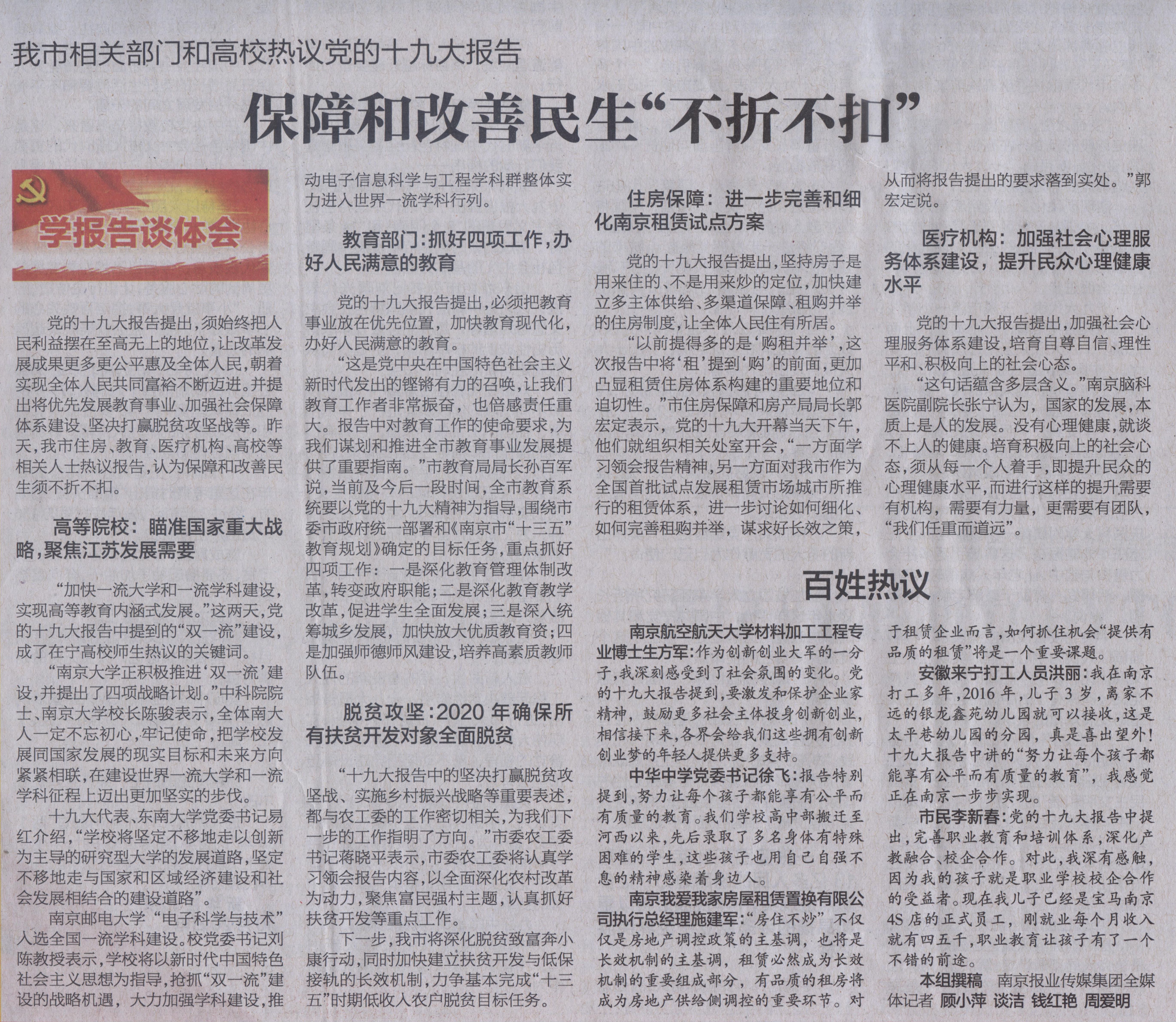 【南京日报】我市相关部门和高校热议党的十九大报告