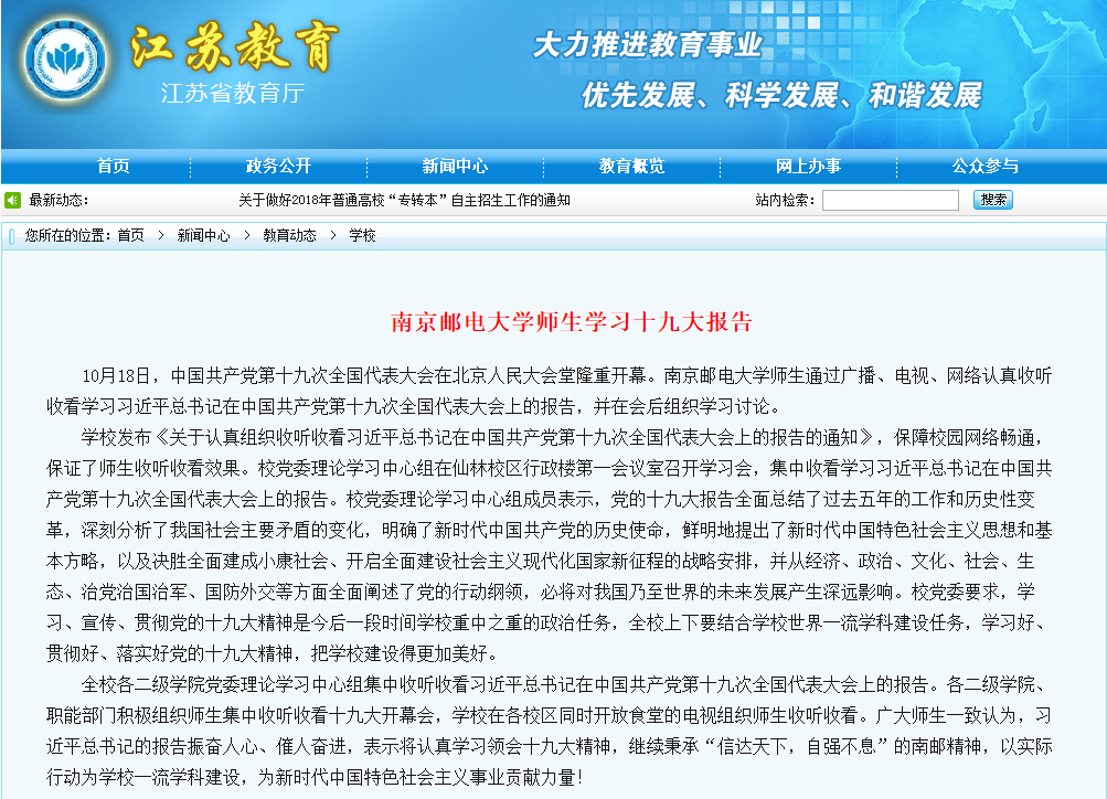 【江苏教育】南京邮电大学师生学习十九大报告