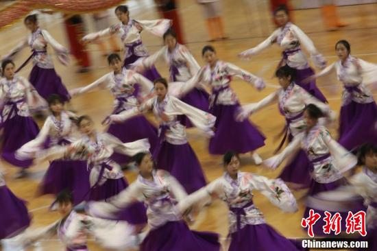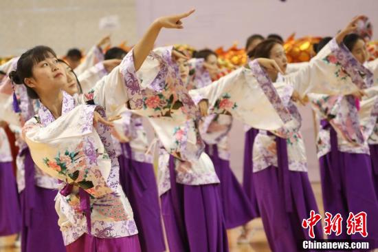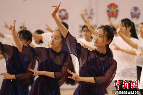 当日,“舞动青春”首届戏曲广播操比赛在南京邮电大学举行。