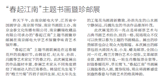 【现代快报】“春起江南”主题书画暨珍邮展
