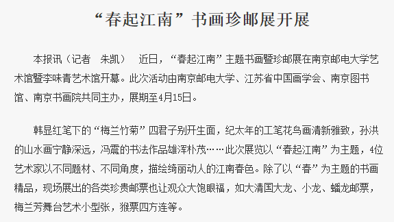 【南京日报】“春起江南”书画珍邮展开展