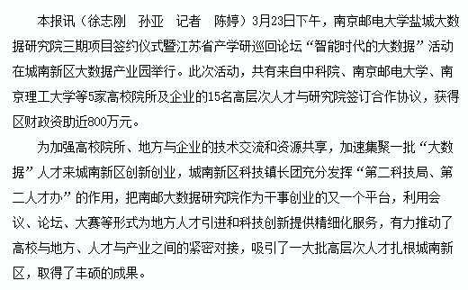 【盐阜大众报】南邮盐城大数据研究院三期项目签约