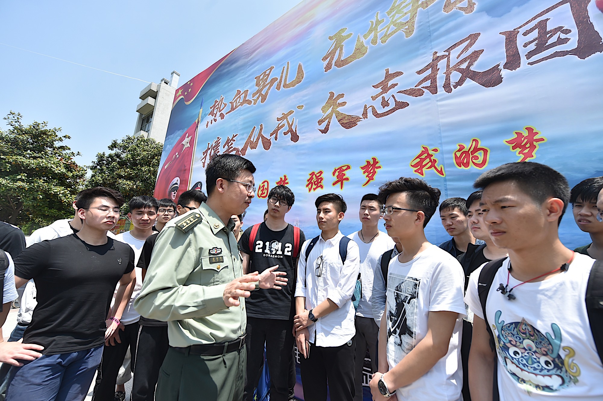 现场的现场展板上,将大学生从军入伍的主要优惠政策写得明了:可以参加“退役大学生士兵”专项硕土研究生招生计划;在部队荣立二等功及以上的退役人员,符合研究生报名条件的可免试(指初试)攻读硕士研究生;完成本科学业后3年内参加全国硕土研究生招生考试,初试总分加10分,同等条件下优先录取;就业方面,毕业生士兵退役后一年内,可视同当年的应届毕业生,还可参加定向事业单位招聘。