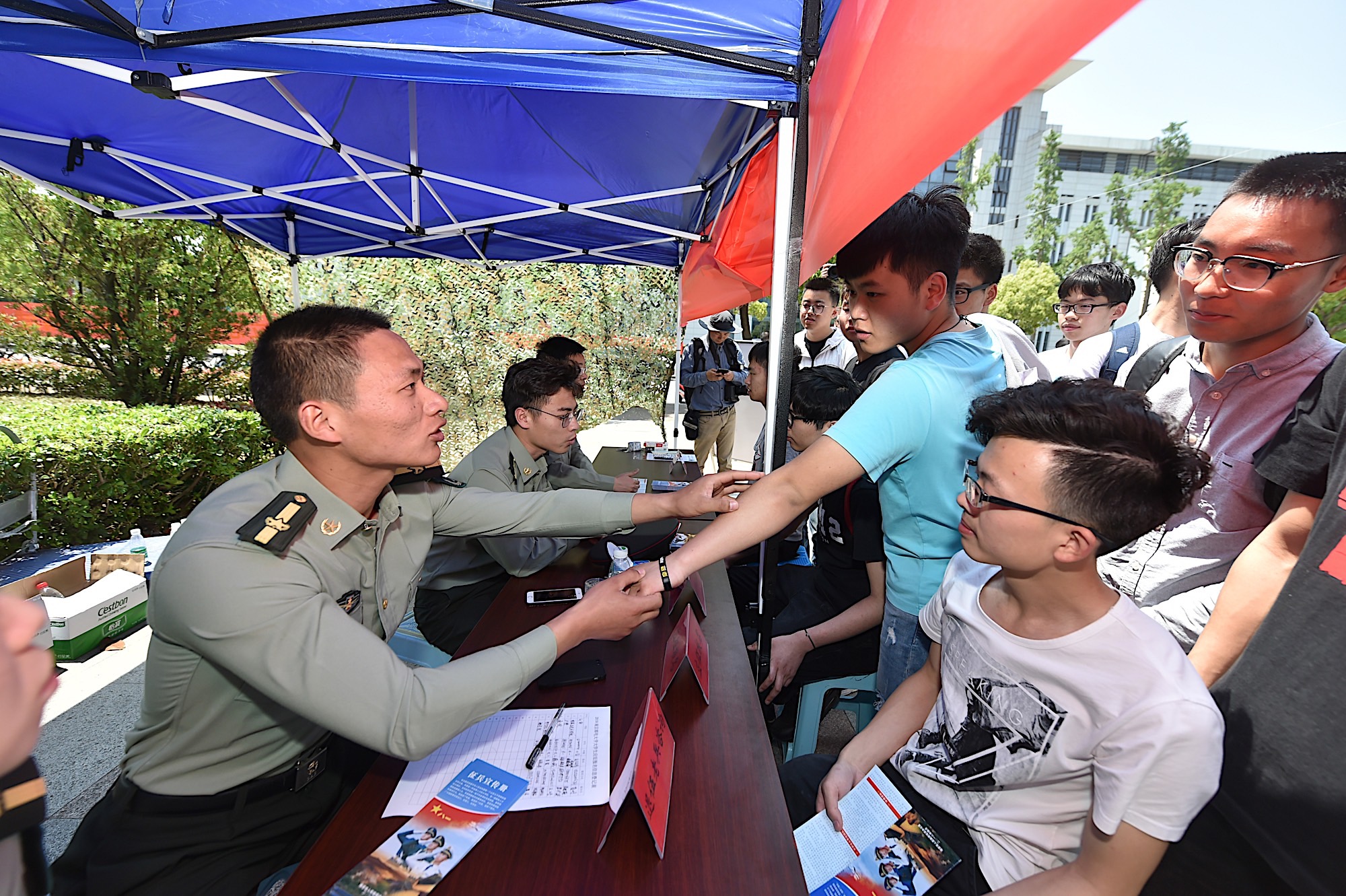 交汇点讯 携笔从戎,矢志报国。5月3日,南京市鼓楼区人武部开展的“大学生应征入伍政策宣传月”活动走进南京邮电大学。在咨询会现场,鼓楼区人武部的工作人员向大学生们详细解读相关政策,欢迎有文化、有素养、能吃苦、勇担当的大学生们进军营,磨砺自身,奉献祖国。