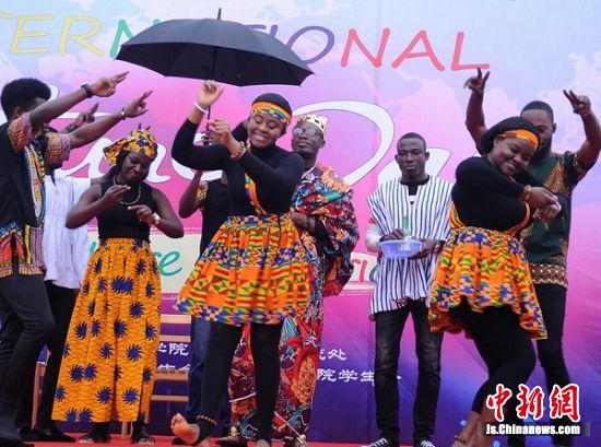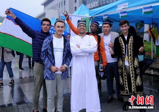 5月25日傍晚,南京邮电大学举办首届国际文化节,来自俄罗斯、吉尔吉斯斯坦、孟加拉国、哈萨克斯坦、赤道几内亚、刚果(金)、刚果(布)等28个国家的100余名留学生和中国学生一道,以歌舞、书法、民族乐器弹奏、美食品尝等为媒,分享各自地区的歌舞和特色美食,交流各国多姿多彩的民族文化。
