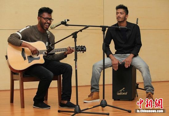 来自孟加拉国的留学生弹唱民谣。 沈金霞 摄