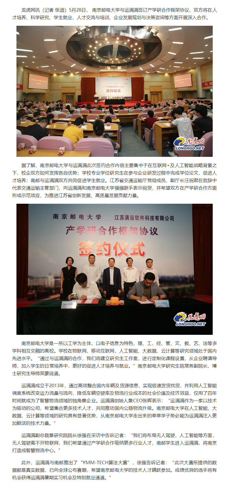 【龙虎网】运满满与南邮签约开展产学研合作 课程定制校企融合