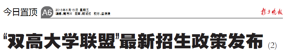 【扬子晚报】“双高大学联盟”最新招生政策发布
