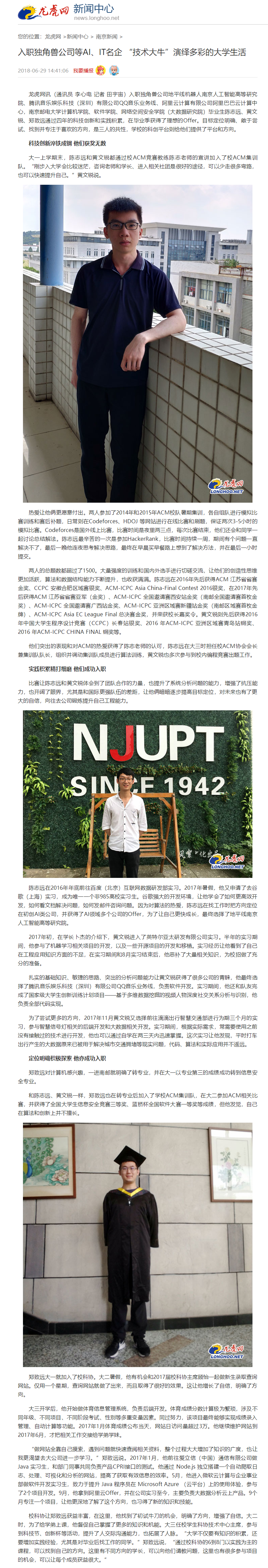 【龙虎网】入职独角兽公司等AI、IT名企 “技术大牛”演绎多彩的大学生活