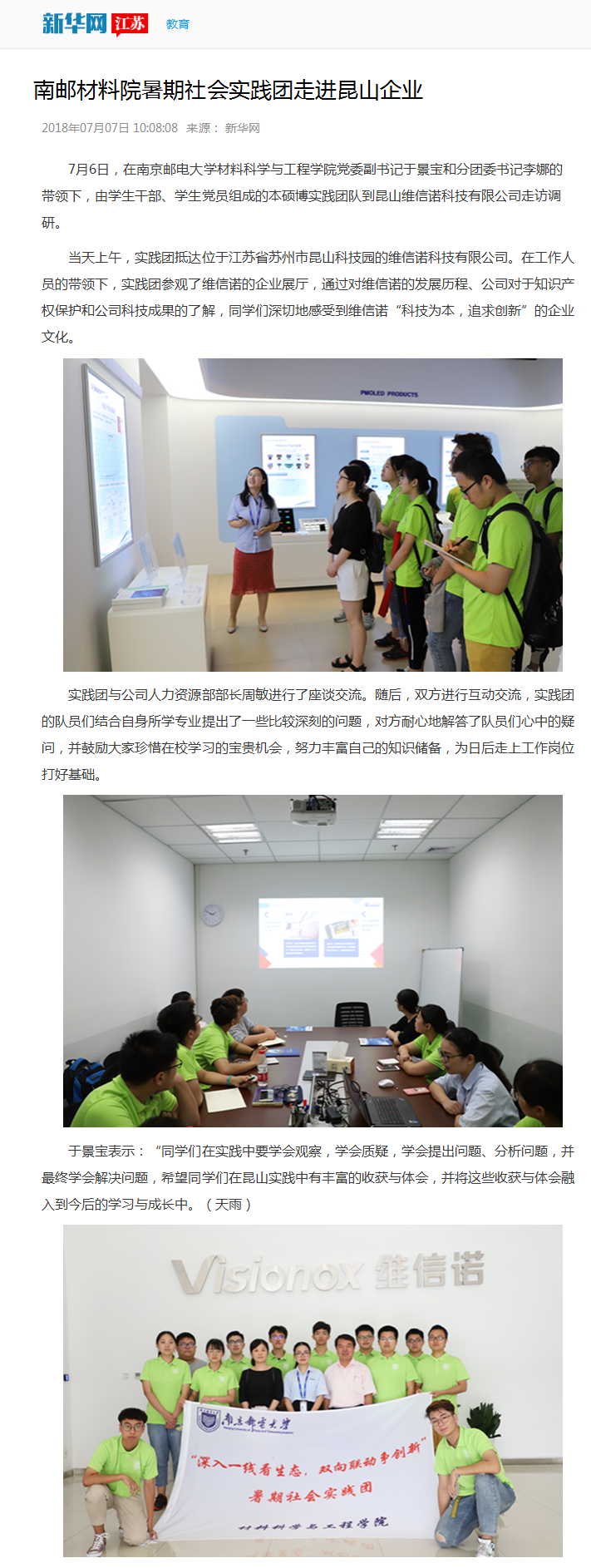 【新华网】南邮材料院暑期社会实践团走进昆山企业