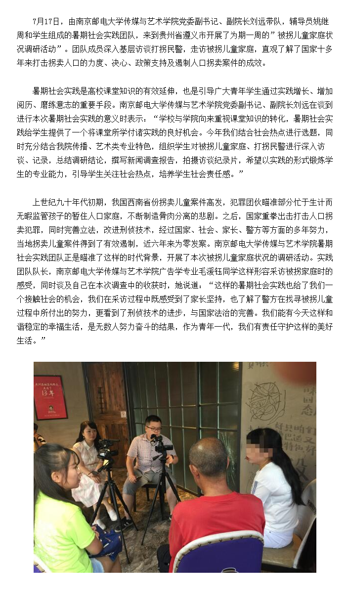 【鄂尔多斯网】南京邮电大学师生开展”被拐卖儿童家庭状况调研”暑期社会实践活动