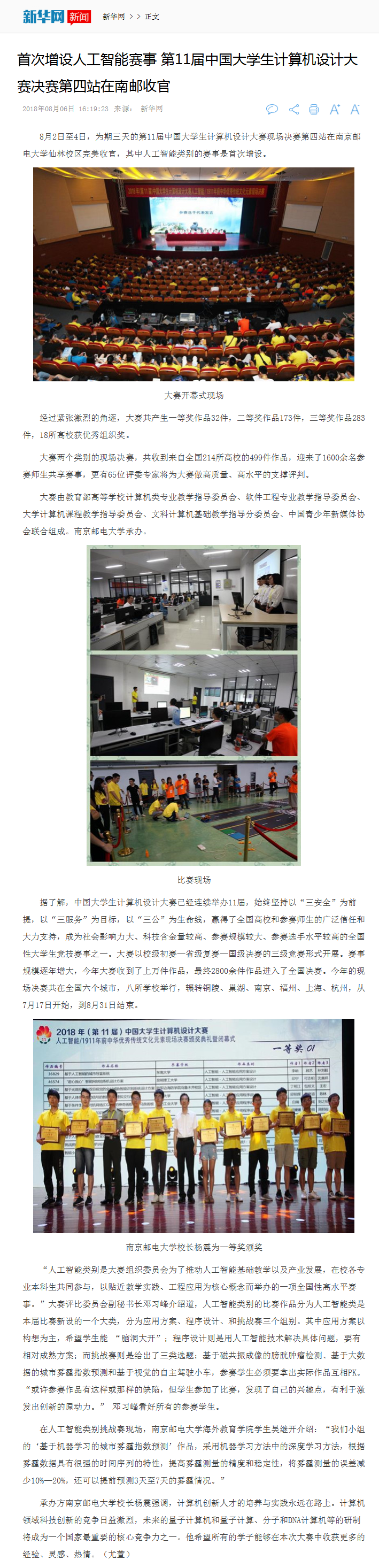 【新华网】首次增设人工智能赛事 第11届中国大学生计算机设计大赛决赛第四站在南邮收官