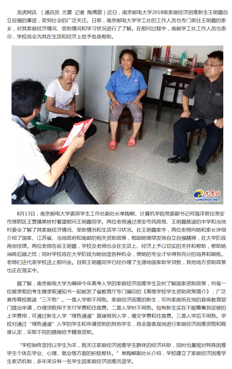 【龙虎网】南邮学工部门赴淮安慰问家庭经济困难新生