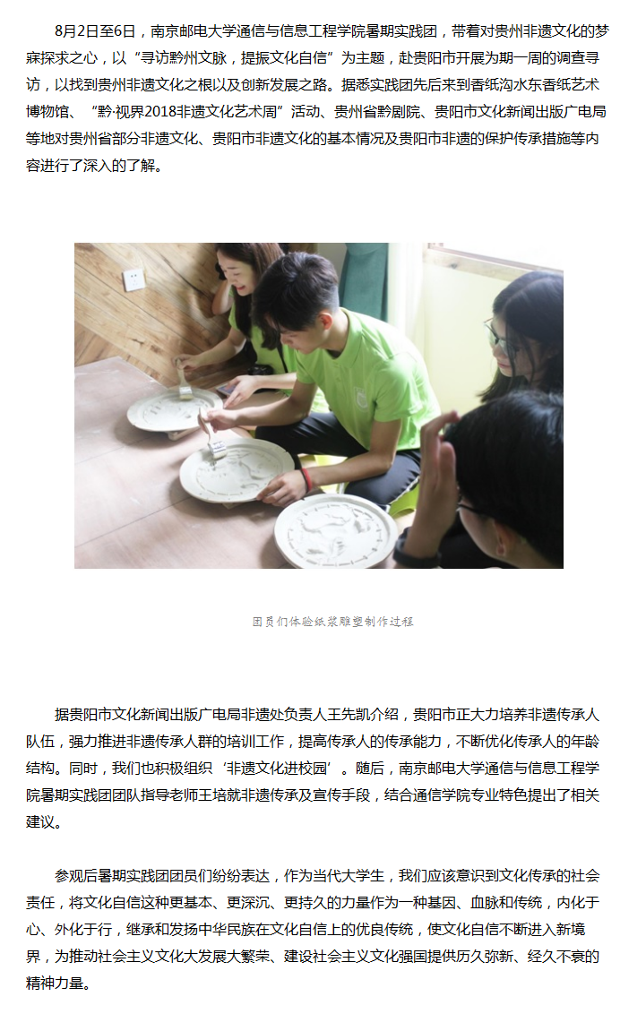 【当代先锋网 】南京邮电大学学子寻访黔地体验多彩贵州非遗文化
