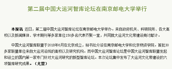 【中国科学报】第二届中国大运河智库论坛在南京邮电大学举行