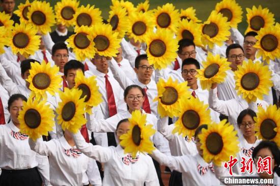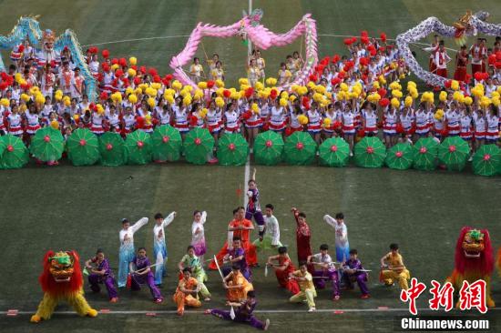 【中国新闻网】南京邮电大学运动会上演壮观团体操