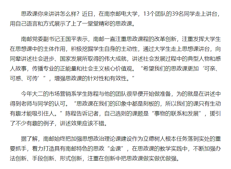 【中国江苏网】让课堂有趣起来 南邮学子走上讲台授思政课