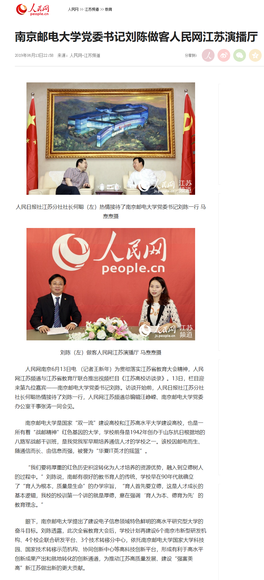 【人民网】南京邮电大学党委书记刘陈做客人民网江苏演播厅