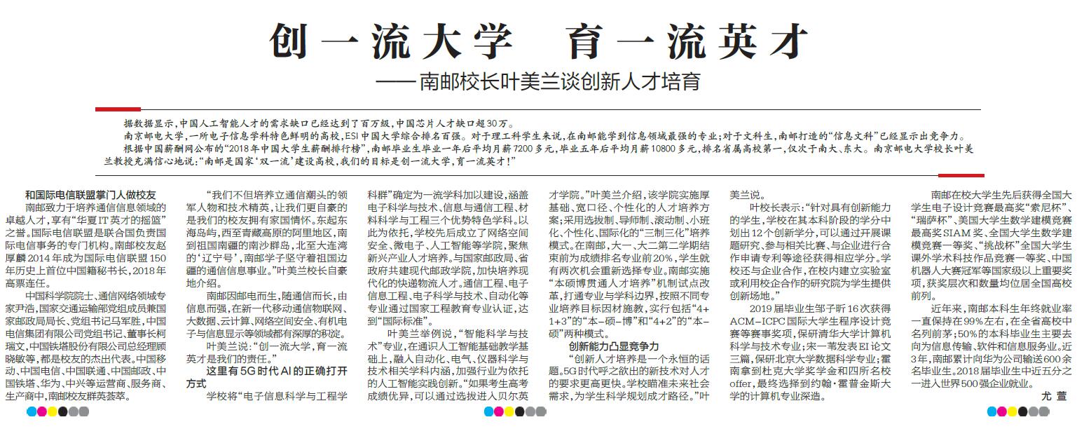 【新华日报】创一流大学 育一流英才