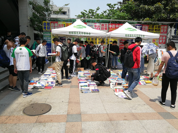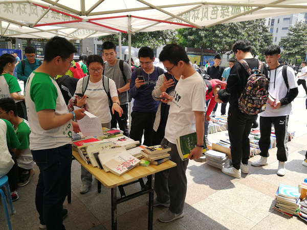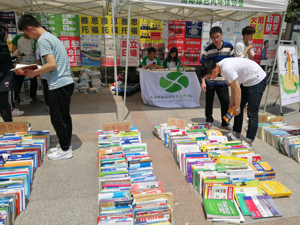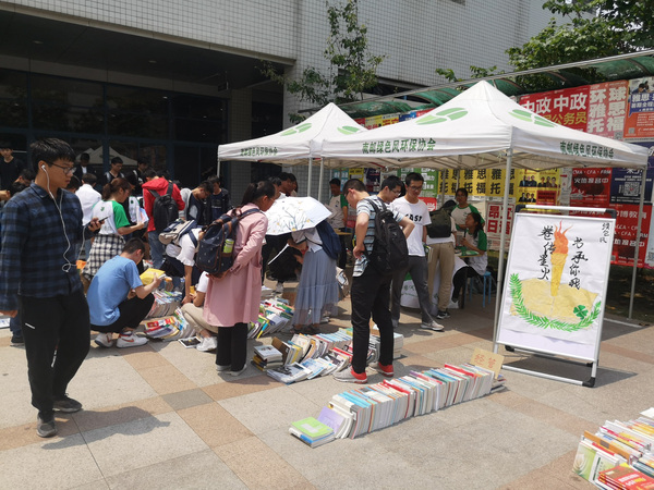 此次活动不仅传播了“绿色离校”的理念,提升了同学们的环保意识,同时也帮助毕业生回收了闲置书籍,实现了书籍的共享与传承,让知识与爱心在南京邮电大学里传递。(图:活动现场,在校师生正在挑选喜爱的书籍)