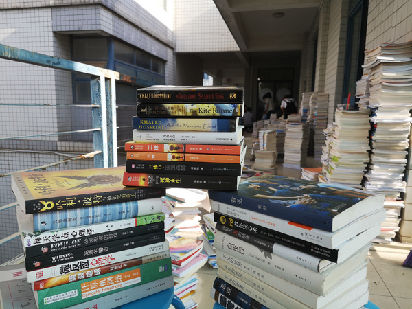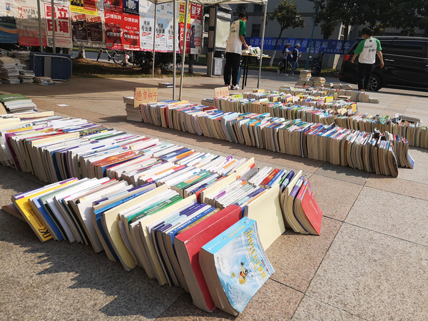 正值毕业生离校之际,为帮助毕业生处理闲置书籍,循环利用资源,避免资源浪费,传递爱心,近日,南京邮电大学绿色风环保协会在南三食堂外开展“绿色离校·学长火炬”活动。(图:志愿者整理分类的书籍)
