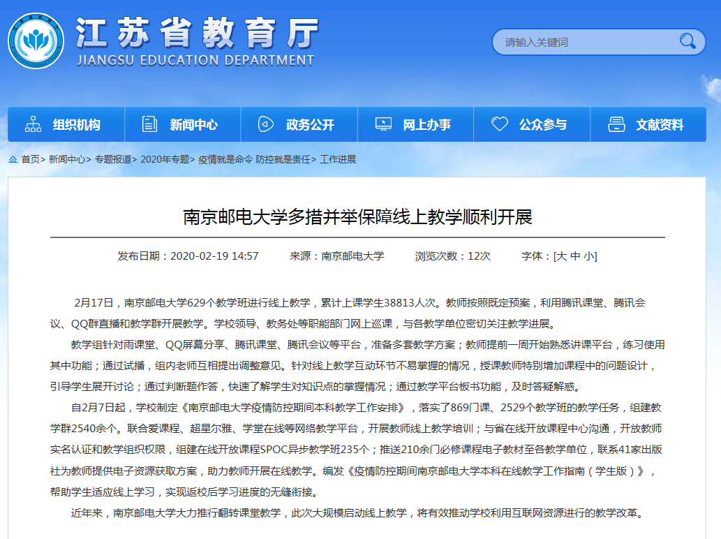 【江苏教育】 南京邮电大学多措并举保障线上教学顺利开展