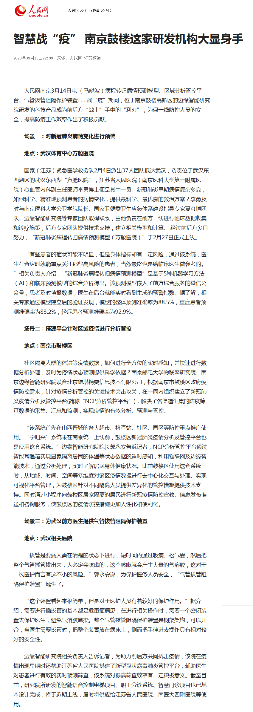 【人民网】智慧战“疫” 南京鼓楼这家研发机构大显身手