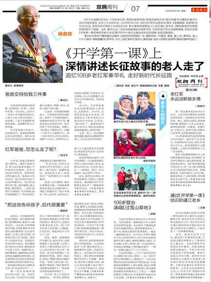 【金陵晚报】《开学第一课》上深情讲述长征故事的老人走了