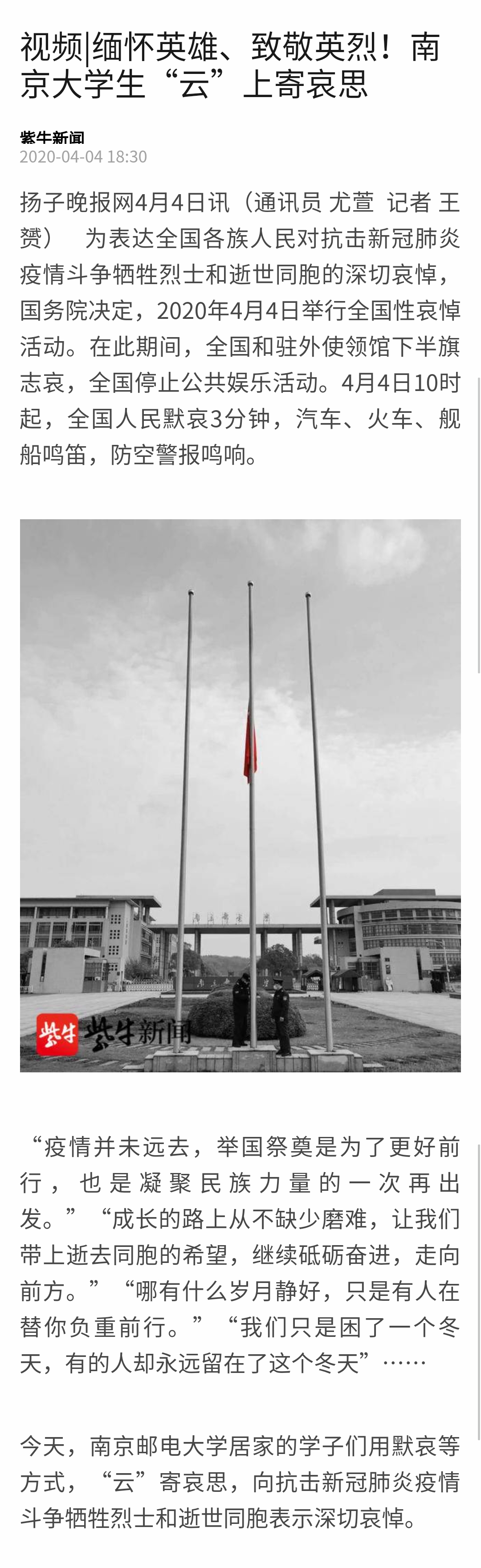 【扬子晚报网】缅怀英雄、致敬英烈!南京大学生“云”上寄哀思