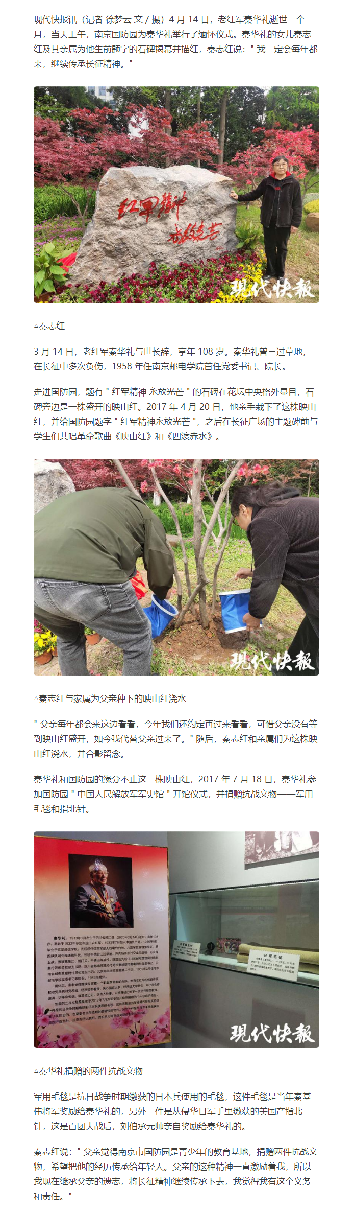 【现代快报全媒体】老红军秦华礼缅怀仪式在南京国防园举行,女儿:我会继续传承父亲的长征精神