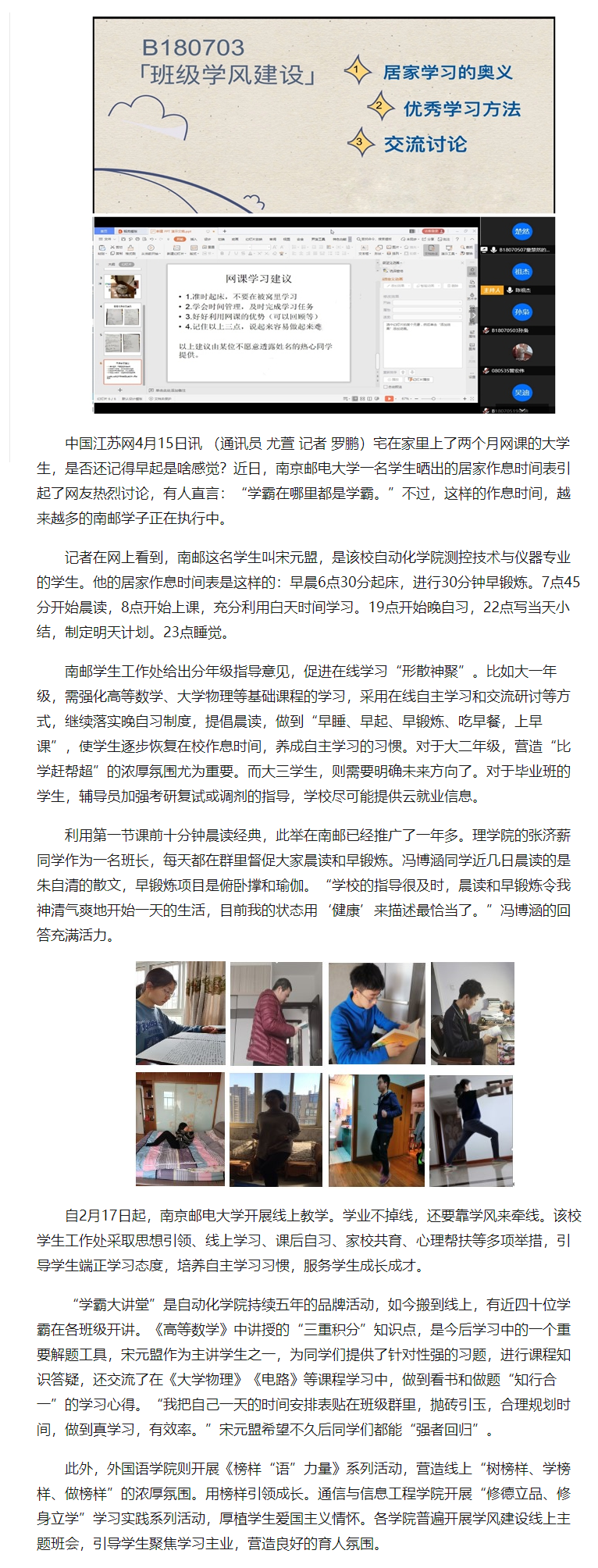 【中国江苏网】南邮:在线促进良好学风 强者“永不掉线”