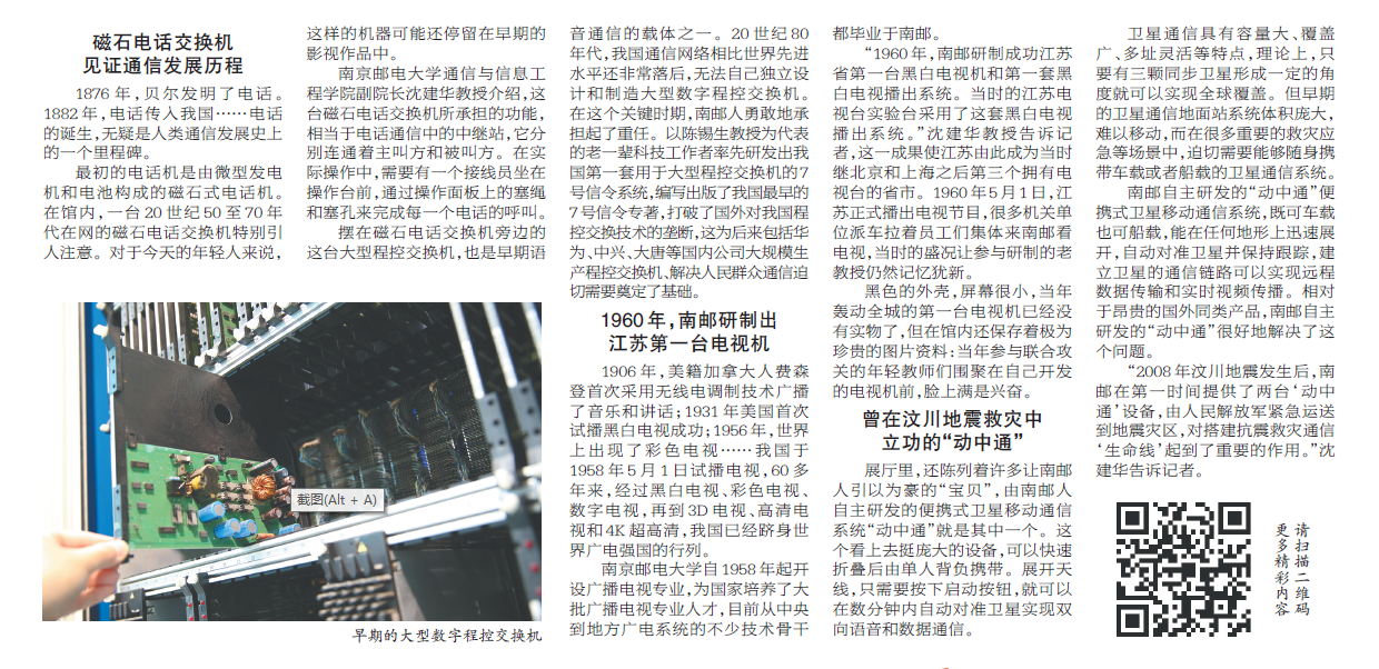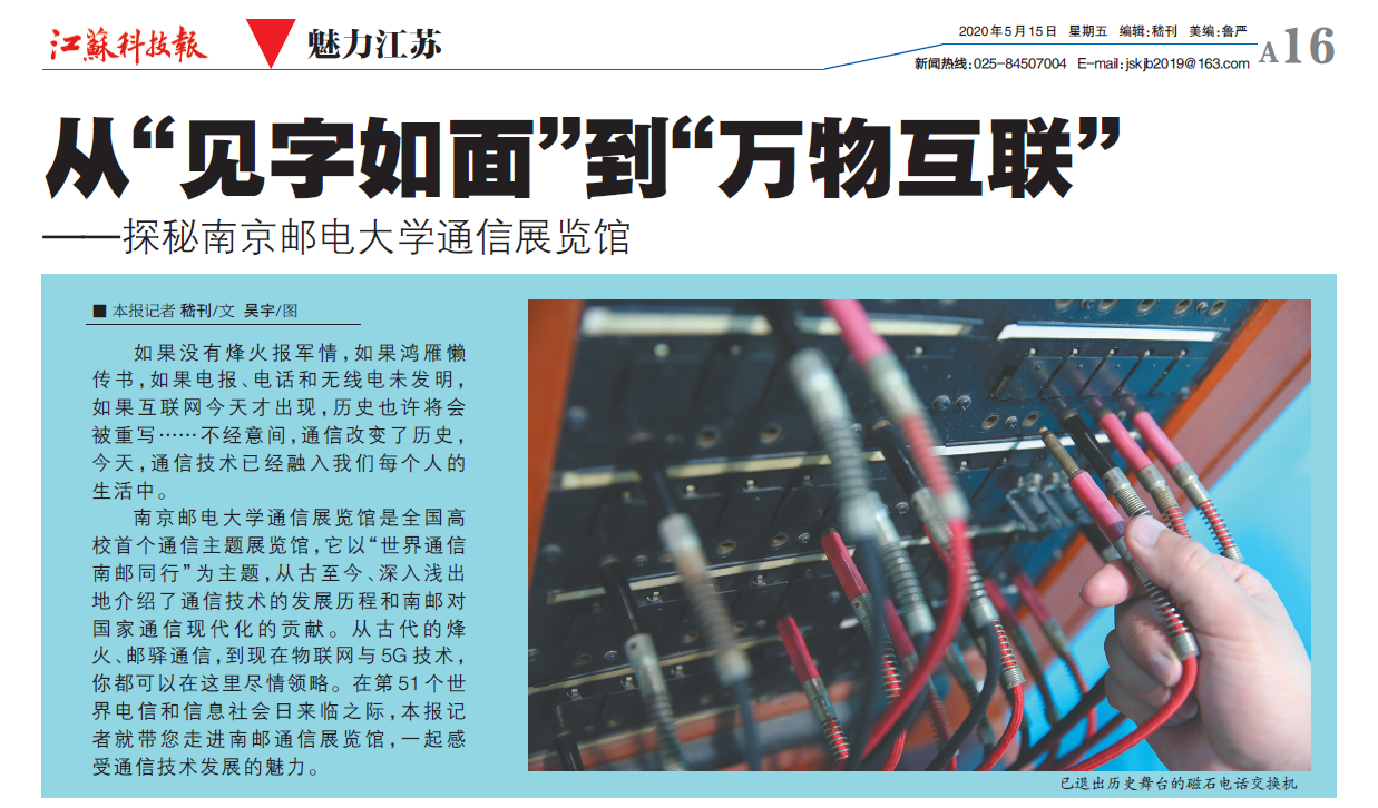 【江苏科技报】从“见字如面”到“万物互联”——探秘南京邮电大学通信展览馆