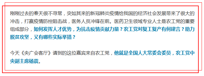 【中央广电总台中国之声】农工党中央副主席杨震:脱贫攻坚为何需要民主监督?监督什么?