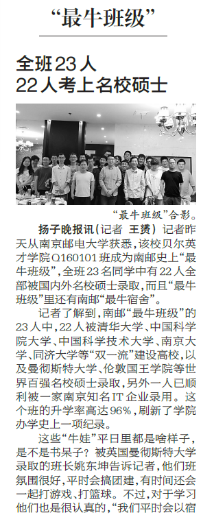 【扬子晚报】全班23人 22人考上名校硕士